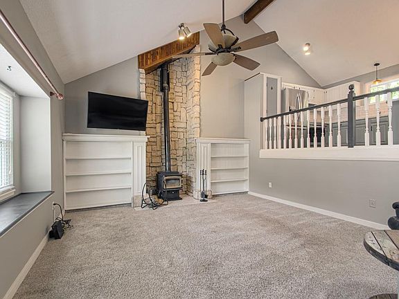 Step inside and be greeted by a spacious living area with a stunning vaulted ceiling that makes every day feel like a grand occasion. Cozy up to the crackling warmth of the wood-burning stove on chilly evenings, or enjoy the fresh and contemporary vibe of the new paint and windows throughout.