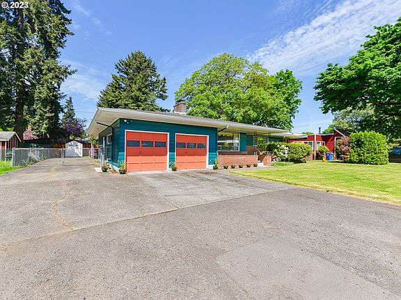 Allow this Marvelous Mid-Century to dazzle you with historic charm. Enjoy this everything SPACIOUS home from the bedrooms to the backyard to the oversized garage! Freshly painted a gorgeous peacock blue for the occasion, this house welcomes you inside through the solid original front door into an open concept living and dining room area. Enjoy the living room as the 1960s intended, with dinner in front of the TV, or simply enjoy an evening cocktail with the ambiance of firelight. To the right of the entry is the main floor, private area with three large bedrooms and two full baths. The hardwood floors made their re-debut during a bout of pandemic boredom and are in very good condition. The large galley kitchen has quality cabinets and leads into the utility room. Downstairs, you will find the basement. This could make a lovely primary sanctuary or an in-law suite with a fourth, even larger, non-conforming bedroom, right next to the newly remodeled third full bathroom. The retro-recreation room comes furnished with a period-appropriate pool table and lots of storage underneath the bench seating. The bonus room fireplace is plumbed and ready for a gas log kit. The house is ideally placed on the lot allowing space and privacy. The backyard gives the feel of country living with a view of a century barn on the neighboring property. The ginormous low-maintenance yard is ready for your vision and perfect for entertaining, kids, pets, and gardening. The large RV driveway is prefect for all of your outdoor toys. Don't miss out on this one-of-a-kind beauty! Smart locks and devices do not convey with home. Seller paid warranty is included. [Home Energy Score = 4. HES Report at https://rpt.greenbuildingregistry.com/hes/OR10214933]