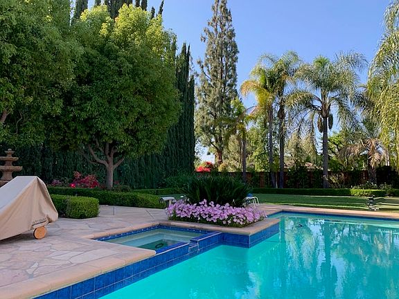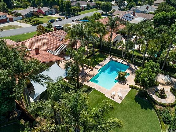 Beautiful single story home in a luxurious neighborhood in Villa Park with 1/2 acre flat lot and resort like backyard that includeds patios, heated pool and spa, fountain, 8 seated curved Bar B Q island with fridge, burners and grill and covered putting green with sand trap and 6 holes! Large gourmet kitchen boasting stainless steel applicances, island, granite counters, pull outs in custom cabintets and walk-in pantry and beautiful french door to the beautiful backyard. Family room with custom stone fireplace and built-in large TV with easy access via french door to backyard. Newer wood floors and Hunter Douglas blinds throughout house. Large master bedroom with french door to the backyard, custom closets with built-in plus dressing room area with mirrored wardrobes, Hunter Douglas blinds and draperies and remodeled bath with marble, double sinks, vanity, separate spa tub and shower. Second smaller master bedroom with walk-in closet, featuring travertine counters plus separate large shower & tub, newly remodeled secondary bath and half bath wth marble and granite. Quality abounds such as recessed lights, speakers in living room, family room, Master bedroom and secondary bedroom, crown moldings coffered ceilings & skylights. Garage has built-in stairs to large storage area & epoxy floors. Easy access to freeways, shopping, public schools and Orange Lutheran High School. Prospective renter or agent please call or text owner Elaine for an appointment. Lease term for two years. Move-in costs include first month rent, security deposit and last month rent. Tenant pays for credit and background check. Tenant pays for their own utility fees and maintenance of the yard and pool.