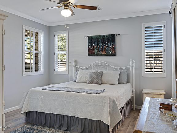Great features will welcome you into this home. Great room floor plan with 3 bedrooms. No carpet. The kitchen is in the center of all the action with a cozy dining room at the front of the home. Central Vac system. Plantation shutters through out and crown molding in the Owners suite. Many other custom touches through out. The backyard is low maintenance with turf and extra seating spaces waiting for you to enjoy.