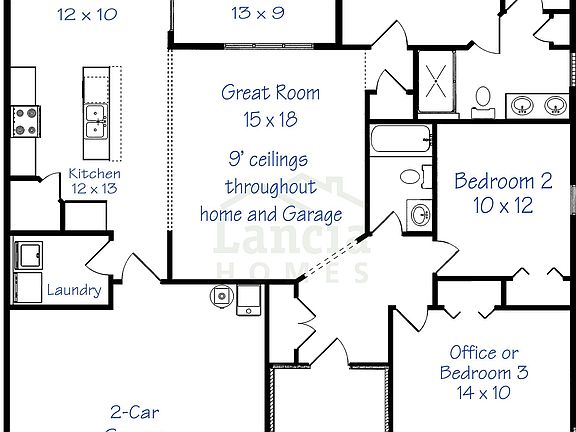 Lancia's Franklin II ranch floorplan has 1,415 sq.ft., Great Room has 9' ceiling with ceiling fan, Kitchen island faces Great Room, Nook, 13 x 9 Covered Patio and an open 6 x 13 Patio beyond. 2-Car Garage has 4' extension. Kitchen has breakfast bar on island, stainless appliances, smooth top range, corner pantry, addl gas line to range, soft close drawers and ceramic backsplash. Nook leads out onto Covered Patio and open Patio. Separate Laundry off Garage. Designer white laminate wood shelving in all closets. Ceiling paddle fan also in Owner Suite Bedroom, private Owner Suite Bath, Closet is 5 x 12 walk-in closet with dual rod & shelf 1-wall unit. Vinyl plank flooring in Kitchen, Nook, Pantry, Foyer, Great Room, Bathrooms and Laundry Room. Bedroom 3 could also be used as an Office. Very versatile plan! Garage is finished with drywall, paint, attic access with pull-down stairs and has one 240-volt outlet pre-wired for an electric vehicle charging. Elevation has brick for curb appeal. Home has Simplx Smart Home Technology - Control panel, up to 4 door sensors, motion, LED bulbs throughout, USB port built-in charger in places. 2-year foundation to roof guarantee and an in-house Service Dept. (Grading and seeding completed after closing per Lancia's lawn schedule.) This home is located in the popular NE area of Fort Wayne minutes from schools and shopping. ILLUSTRATION SHOWN FROM FOUNDATION STAGE UNTIL SIDING IS ON.