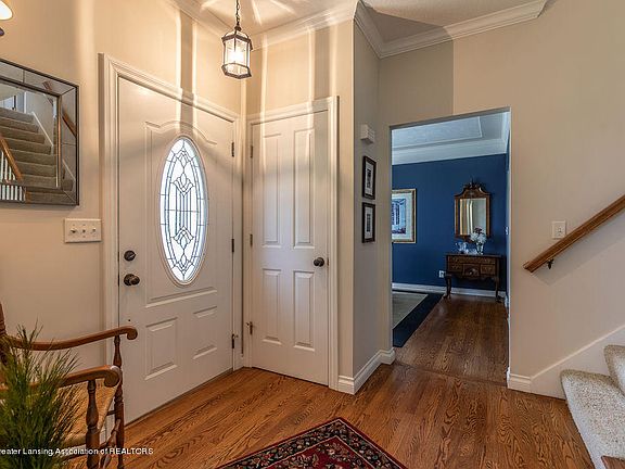 If you are looking for quality AND quantity in your next home, look no further! Welcoming covered front porch & beautiful landscape! Dream kitchen with hickory cupboards, granite counters, stainless steel appliances PLUS beverage/wine cooler. Inviting fireside living room seating. First floor master suite has window view retreat space, walk-in closet and newly remodelled bath. Beautiful details throughout; including the lighted tray ceiling and crown molding. Three additional , spacious bedrooms upstairs and loft nook. First floor laundry doubles as mud room entrance from garage. The basement is open and flexible for hobbies or ready to finish. Screened overlooks a brick patio adorned with perennials and beautiful nature setting. Immaculately maintained & tasteful colors and decor. Reserved: gas grill, curtains in master br & black/white br. Assoc. maintains green space across street, waste/water system and pond.