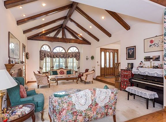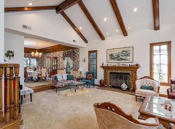 Beautiful custom-built Tudor estate in 24/7 GRD GTD prestigious Running Springs* 4,570 Sqft, approx. 1/2 acre Cul-De-Sac* Open floor plan w/ high cathedral ceilings & spiral staircase* Spacious bedrooms w/ high 9ft+ ceilings, walk-in closets, intercom, own FULL BA w/ custom tiles & faucets* Dumb-waiter from kitchen to Master* Laundry-chute from upstairs* 3 fireplaces & a wet bar* 1 BR + big Bonus Room (can be 6th BR) downstairs* 3-car garage + ONE more car space for storage* RV parking* Large extra closet converted from attic space & big attic storage space above the whole garage area* Gourmet kitchen w/ new granite counters, lots of cabinets...real oak w/ brass handles, new 6-burner stove, double oven, convection oven & microwave, built-in refrigerator, trash compactor, walk-in pantry* Lovely Master w/fireplace, spa tub, 5-head shower, walk-in closet, big balcony overlooking park-like backyard* Entertainer's backyard w/ pool, spa, custom built BBQ, fountain statue, lots of outdoor light fixtures & malibu lights* Real oak doors & special moldings w/ detailed wood finishing work throughout the house ....WARM & HOMEY!! + OPEN & GRAND....
