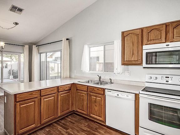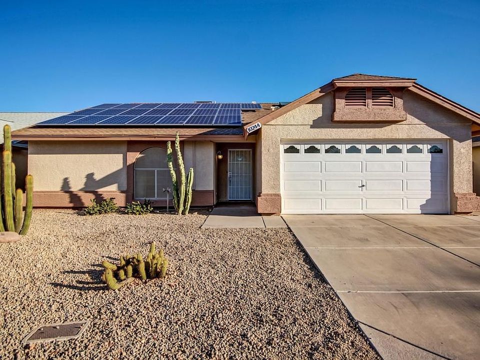 Beautiful single story home with a great open floor plan. Eat in Kitchen with breakfast bar. Large windows to bring in plenty of natural light. Vaulted ceilings. Vinyl wood looking flooring and tile throughout. Large master suite with two closets, tiled shower, separate toilet room, and also private exit to the backyard. Complete back yard ready for entertaining, extended covered patio and slab, synthetic grass for easy maintenance, and storage shed. Many more extra's...New interior, exterior paint, and AC unit in 2017, paid off solar system, solar H2O, 2015 H2O concepts water purification system. Easy access to freeway and close to shopping centers.