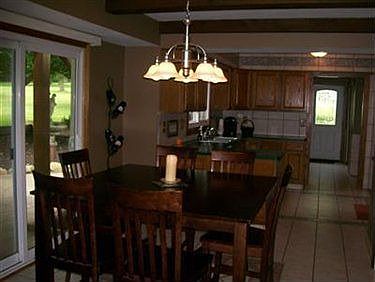 Enjoy one floor living in this stylish and updated ranch home-no stairs to navigate!! Master bedroom with private full bath, walk-in closet and slider to patio. Family room offers a woodburning fireplace and newer flooring; kitchen is updated and all appliances stay. Eat in area of kitchen has slider to patio and access to deck. *Newer roof, newer furnace, *newer windows, doors, floors,*newer gutters and newer vanities.* Enjoy the privacy and quiet setting on over 2 acres. 4 th bedroom currently has convenient office built-ins. Great closet/storage space throughout. New price-great value!!! Call it home!!