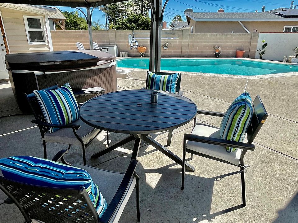 Newly updated home with lots of contemporary designs. Spacious living room, 4 bedrooms, 2 bathrooms. The master suite features pool view bedroom, with a dedicated study area. Renting with furniture, 30 days or more. Beautiful new bathrooms and new appliances. Outdoor pool can be heated, Hot tub is always available after a long day. Owner pays for internet, gardener, and pool service. Non smoking. 3 car parking in the driveway.