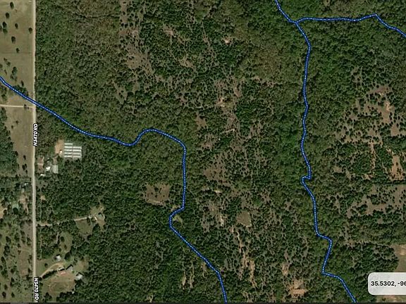 Embrace the natural beauty of these 38 acres (more or less) of wooded land teeming with wildlife! This property is fenced on three sides and features a convenient 2-car shop/garage, a built-in front porch, and a charming seasonal creek to the north & west. The single wide mobile home, offering 3 bedrooms and 2 bathrooms, requires some tender loving care and is being sold "as is." Electrical panel and well pump are needed. Experience rural tranquility just 1.75 miles off a dirt road from Hwy 62 from Meeker OK. Enjoy nature at your doorstep, front and back. (Seller will remove Greenhouse with approve contract)
