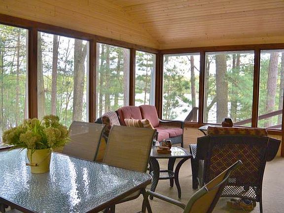 Great opportunity in a sought-after area of the Northwoods on beautiful Lower Kaubashine Lake. This ranch style home has 2 bedrooms on the main floor, with a finished full basement & walkout leading to a moderate slope towards the lake. There you will be met by 100ft. of waterfront, ideal for swimming and recreational activities. The ranch style home has been extensively remodeled over the past decade. Kitchen and bathroom are gorgeous! Beautiful fieldstone fireplace in the cozy living room is definitely the focal point of the open concept area. Let's not forget the lakeside screened in room! You will spend hours enjoying views of the lake. Additional bedroom and laundry in lower level, fieldstone fire pit, landscaped yard, lakeside deck, and storage shed down by the water are just a few of the additional features. This property also includes a detached 2 car garage and is conveniently located just south of Minocqua and all of its amenities, on the peaceful side of the Northwoods.