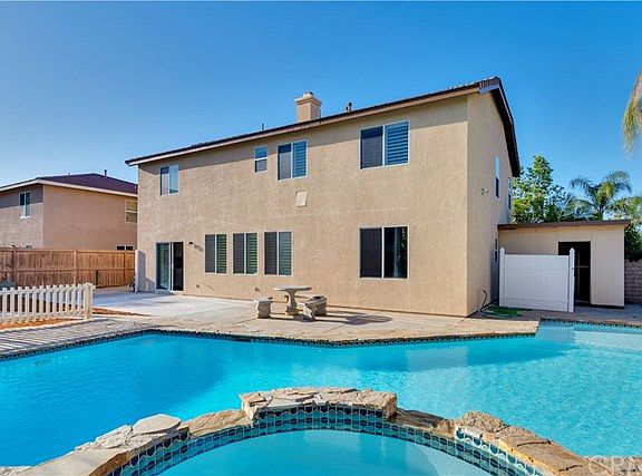Splish! Splash ! This gorgeous South Corona home features a Sparkling Pool and Spa and a large back yard ! Imagine the back yard Bar-Be-Ques you can host in this yard!this home shows beautifully and features NEW carpeting, NEW laminate flooring, NEW interior paint, NEW bathroom fixtures, NEW interior doors, NEW kitchen appliances, Granite counter tops, and some Plantation shutters on the windows.Super floor plan has a formal dining room and a Butler's pantry, Large family room, Large bonus room upstairs, and a Bedroom and bathroom downstairs. All this in a beautiful setting at the base of the Cleveland National Forest and oh so close to Glen Ivy Hot Springs!!