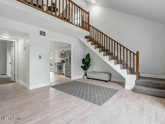 New roof 2025! Welcome home to this stunning 3 bedroom, 2 bathroom home in the highly desirable Arrowhead Forest community with no HOA. As soon as you walk in, enjoy a large, open living room with a floor-to-ceiling stone fireplace. No detail was left untouched with updated bathrooms, new carpets, porcelain tile flooring, new water heater, fresh paint, newer cabinets with premium quartz counters and ss appliances. One of the bedrooms upstairs equipped with a balcony that overlooks a backyard full of serenity & tranquility! It keeps getting better with nice sized wooden deck in rear and a double car garage with a long driveway. Conveniently located in the heart of Mandarin close to schools, highways and less than 5 minutes from Whole Foods, 2 Publix stores, and just about every restaurant or store you could need.