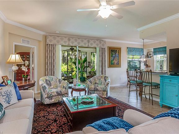 Newer (built in 2013), with a great open floor plan, this spacious condo feels like "home." Better than new, this beautiful condo has tiled floors throughout, crown molding, upgraded appliances, granite counter tops with breakfast bar, large custom walk in closets, new under counter lights in kitchen, built in bookcase in kitchen/breakfast nook, built-ins in garage, electric curtain in living room, impact glass and more. There are three bedrooms, 2 baths, a true two car garage, and a spacious lanai that has been recently painted, and overlooks a beautiful and peaceful preserve. The condo is within easy walking distance of the west side pool and workout area. There are two pools and two exercise facilities, and tennis courts at Hawthorne. It is an ideal location with the main access off of Three Oaks Parkway and the west entrance off of Old 41 making it easy to get to the airport, the beaches, and to several nearby shopping and dining areas. If you're looking for ease of living in a great location, this is it.