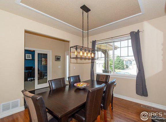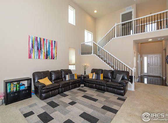 Wonderful updated 2-story home in desirable St. Vrain Ranch. Loaded with upgrades, hardwood floors, knotty alder cabinets, and black stainless appliances. Great room with vaulted ceilings and with a fireplace. Formal dining, main floor study and so much more. Finished Basement with huge rec room and bar. Nice Views, walking trails and nearby parks.
