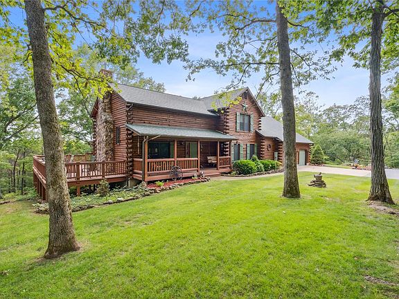 Custom 1.5 story on 8.3 private acres offers 3+ beds, 4 baths and over 3200 sq ft! Entering the property you are flanked by beautiful trees that open to the level & lovely landscaped yard. Covered front porch w/swing brings you inside the two story great room w/stunning stone floor to ceiling FP. French doors that open to expansive four-season room features cathedral ceiling & wall of windows overlooking the serene wooded 8+ acreage. Formal dining leads to Kitchen w/custom cabinets, granite counters, double ovens, gas cooktop & pantry which opens to breakfast rm w/built in desk. Master Bed w/en suite features heated stone floor, large walk-in closet. Large Main floor laundry rm & Half Bath complete level. UL has 2 spacious beds, full bath and loft office/study area. LL has rec space w/gas stove FP, 3rd full bath, possible 4th bed & lots of storage. Exterior has 3 decks, large shed, covered patio. HVAC 2019, Roof 6 years new, Cedar stained/sealed 2023. Convenient location. Additional Rooms: Sun Room