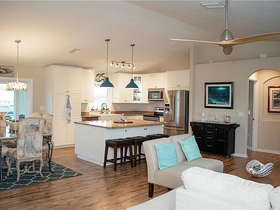 Beautifully furnished and equipped Annual or Seasonal Rental located in South Gulf Cove. Enjoy a day on the water with the convenience of having your boat docked. The kitchen has been recently remodeled featuring under cabinet lighting, granite countertops with tiled backsplash plus a large island. There is upgraded flooring throughout the split bedroom floor plan. Features 2 bedroom, 2 baths with additional sleeping on pull out couch in den. Sleeps 6 guests comfortably. RV Pad and power available. Fully fenced yard - pets welcome! Convenient location close to great shopping, restaurants, world class Golf Courses, quaint Olde Englewood Village and the beautiful Gulf Beaches of Boca Grande! Also available as a seasonal/monthly rental. Seasonal $4850 during December - April; $3,850 all other months. Open dates. Pets considered on case by case. Reserve this piece of Paradise today!