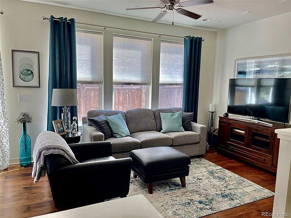 14 month Buyer’s Home Warranty covering all appliances, including washer and dryer, as well as furnace and A/C included with this well maintained, low-maintenance 2 bed, 2.5 bath town home with main floor office and second level loft in Meridian Village. This open floor plan home boasts 9' ceilings and 5" wide plank hickory hardwood floors. The well-appointed kitchen has an oversized island, gas stove, cherry cabinets with under cabinet lighting and gorgeous quartz countertops. The main living area and loft are wired for surround sound and recessed lighting is found throughout. The second level laundry room is quite spacious and contains a large closet for extra storage. The unfinished basement contains rough-in plumbing for another bathroom and bedroom or recreation space. Close to I-25, Tech Center, Shopping, Restaurants and Light Rail.