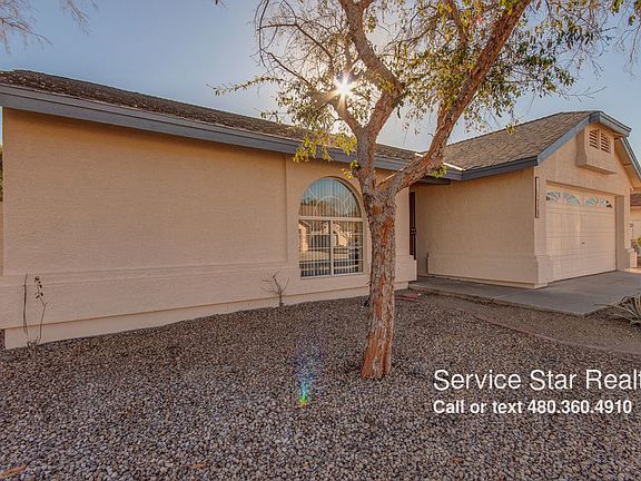 SCHEDULE A SHOWING ONLINE AT: showmojo.com/lh/08e902f0b2 $500 FREE RENT CREDIT! This beautifully remodeled 4BR 2BA home has great curb appeal with easy to maintain desert landscaping and 2 car garage. Inside you will walk in to the grand living room with fresh two-tone paint, high ceilings, tile flooring and open, airy feel. The kitchen has tons of windows, eat in kitchen, matching appliances, dual sink and pantry! Just off the kitchen is a separate laundry room with storage. Each guest bedroom offers blinds to keep cool and share a great hall bathroom. Your new master bedroom has a spacious walk in closet and en-suite private bathroom! The large back yard is perfect for entertaining family and friends. A large covered patio opens to both grass and rock areas! Schedule your self guided tour today! Move-In Special:$500 FREE RENT CREDIT! Please schedule your self-guided tour today! Terms: 1 or 2 year leases only $19 monthly tenant admin fee $250 pet deposit per pet where applies $195 Lease Administration Fee Tenant pays city sales tax Security Deposit on a sliding scale from 1 times to 1.5 times the rent based on credit Application Fee $55 per person over 18 years of age PM: SH Tenant to verify all material facts including but not limited to room sizes, utilities, schools, HOA rules, community amenities, fees and costs, etc.