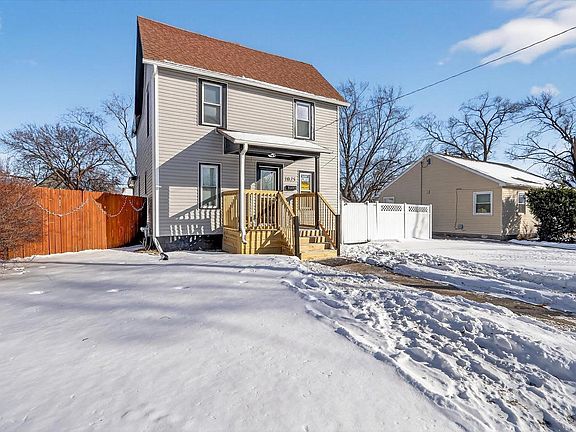 Beautifully updated 4 bedroom, 2 bath home with striking new gray siding on both the house and garage, accented by black window trim for modern curb appeal. The roof is less than 5 years old and a brand-new central air unit adds year-round comfort. Inside, enjoy an open-concept living, dining, and kitchen area featuring new countertops, a custom backsplash, updated appliances, and fresh paint throughout. Fully renovated bathrooms with new fixtures and first floor laundry complete the interior. The basement offers a space for a future bathroom and a bonus playroom or lounge area waiting for your final touches. Fully fenced yard. Truly move-in ready.
