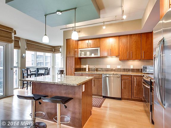 Stunning 1BR/1BA home w/hw floors in desirable Navy Yard neighborhood! SS & granite kit w/island, floor-to-ceiling windows w/custom treatments, set dining area, balcony, ELFA closets, w/d in unit & more! Garage parking spot included! Fitness center, rooftop pool, grills &views, 24-hour front desk/security. Block to Navy Yard Metro & 2 blocks to Nats Ballpark.