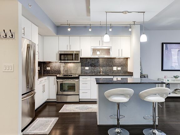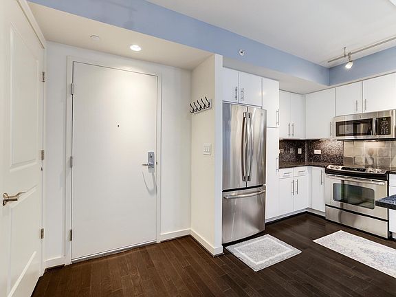 **Move in date flexible starting in mid May or June 1st. This 895 square foot 1 Bed 1 Bath w/ large den condo residence in the heart of Navy Yard with garage parking is the best place to watch the most rapidly growing neighborhood in DC change before your eyes! A condo that has been totally transformed with fresh new paint, a new top-of-the-line dishwasher, refrigerator (Bosch) and brand new washer and dryer (Haier). This home has floor-to-ceiling windows that flood the spacious open plan living area with natural light, showing off the warm wood flooring throughout. A bijou balcony is the ideal place for breakfast or an after-work drink, while the gourmet kitchen, boasting stainless steel appliance suite, granite counters, and island with breakfast bar is perfect for entertaining. The kitchen cabinets are also newly painted with a beautiful white finish. This home features a large primary bedroom with ensuite bath featuring an oversized shower, and walk-in closet. The bathroom vanity has recently been renovated (2020) with brand-new quartz countertops, and fresh paint. A spacious den is an ideal home office or guest bedroom. The Velocity delights with 24 hour concierge and roof deck with grilling area, sweeping views, and a pool; just around the corner from Metro, Nats Park, Whole Foods, and all the amazing bars and restaurants within walking distance! Parking included for additional $200 per month. Renter responsible for gas and electric. No Subletting Pets allowed