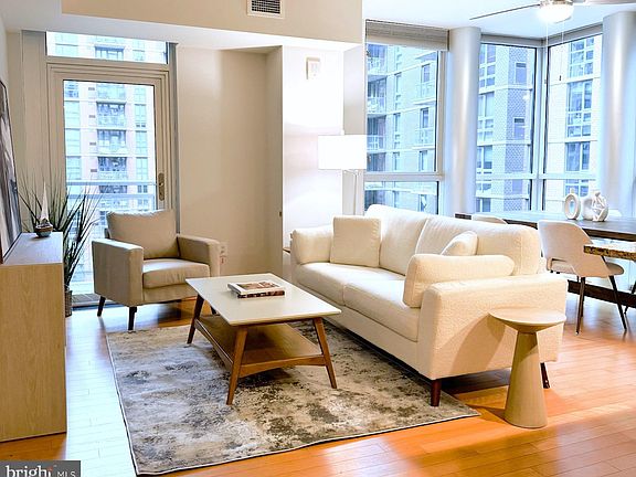With two bedrooms and two bathrooms, this spacious residence spans 1,153 square feet, offering a comfortable and contemporary living experience. The open concept design allows for an easy flow and natural light throughout the home. The kitchen features newer stainless-steel appliances, European style cabinetry, and a kitchen island with counter seating. The generous layout also allows for a large dining table, with corner windows. Additionally, the unit has a private balcony with courtyard views. The tankless water heater installed allows space for a storage closet - great for a pantry! There is an included assigned parking space in the underground parking garage for added convenience. The primary bedroom is generously sized with floor to ceiling corner windows, en-suite bathroom and large walk-in closet. The bathroom features an oversized vanity and shower. The secondary bedroom is located at the other end of the condo for privacy, and shares the hall bath with shower tub. The home has been well maintained by the sellers and includes the following upgrades: HVAC 2017; Tankless water heater, 2020; Meile washer and dryer, Bosch dishwasher, LG Fridge 2021, Microwave, 2019. Residents of this building can indulge in an array of exceptional amenities. The community meeting room has a chef's kitchen, perfect for hosting gatherings and culinary events. Stay active in the large gym, flooded with natural light and equipped with updated exercise equipment. Families with young children will appreciate the dedicated kids’ playroom, providing a safe and engaging space for little ones to explore and play. For those with furry friends, the dog wash station is a convenient and thoughtful addition. Situated in a prime location, this condo has a remarkable walking score of 95 out of 100, making it a true "walking paradise." With an abundance of neighborhood amenities and attractions just steps away, you'll have everything you need right at your fingertips. Public transportation options are easily accessible, with the Green, Blue, Orange, and Silver metro lines all within a convenient distance of 0.5 miles or less. For your grocery needs, both Whole Foods and Harris Teeter are a mere 0.2 miles away. Catch a game at the ballpark or grab a meal at the many dining options. Immerse yourself in the dynamic energy of this sought-after location, where entertainment, dining, and convenience are all within easy reach.
