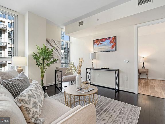 Highly coveted 2-bed, 2-bath, higher floor, corner unit with city view available at The Velocity located in one of the most sought-after neighborhoods in DC-Navy Yard! This stunning residence is a rare find, offering a blend of luxury, convenience, and modern design. Included in the price is one GARAGE parking spot, with the option to purchase a second, making it ideal for households with multiple vehicles. As you step into this beautiful home, you'll be immediately captivated by the floor-to-ceiling windows that bathe the space in natural light and offer breathtaking city views. These expansive windows come equipped with remote-controlled shades, allowing you to easily adjust the light and privacy to your liking. The spacious kitchen is a chef’s dream, featuring updated stainless steel appliances, elegant granite countertops, an abundance of storage space for all your culinary needs and an island with breakfast bar seating perfect for flexible dining options. The open layout flows seamlessly into the living and dining areas, creating a perfect environment for entertaining guests or enjoying a quiet night in. The primary bedroom is a true retreat, generously sized with a walk-in closet, an ensuite bath, and a charming south facing river view Juliette balcony which, when open, provides south facing views of the river, thoughtfully positioned on one wing of the unit to ensure maximum privacy. The ensuite bathroom is designed with luxury in mind, offering modern fixtures and finishes that provide a spa-like experience. On the opposite wing of the unit, the second bedroom also enjoys privacy and comes with its own dedicated bathroom. This thoughtful layout is perfect for guests, family members, or even as a home office. The unit has been significantly enhanced to maximize storage capabilities. Notable upgrades include the installation of a tankless water heater, freeing up an entire closet for additional storage. Additionally, space-saving shelving has been installed throughout, optimizing every inch of available space. Living at The Velocity means enjoying top-notch amenities designed to enhance your lifestyle. The building offers a 24/7 concierge service, ensuring that all your needs are met at any time of day. Stay fit and healthy with access to a state-of-the-art gym, and unwind during the warmer months at the rooftop pool, which provides stunning views of the city. Additionally, there is a meeting room available, perfect for business needs or community gatherings. The location of The Velocity is simply unbeatable. Just a stone's throw away from the Navy Yard metro, commuting is a breeze. You’ll also be within walking distance of Nats Park, allowing you to easily catch a game. The surrounding area is vibrant and full of life, with a plethora of shops, dining options, and entertainment venues to explore. This unit at The Velocity is a perfect blend of elegance, functionality, and convenience. Don’t miss the opportunity to make it your new home! Schedule a viewing today and experience all that this exceptional property has to offer.