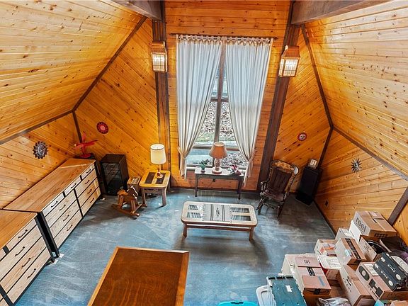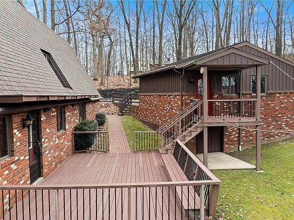 Come check out this beautiful A-Frame Brick custom-built home at 1025 Alamae Lakes Rd, Washington, Pa. 15301. Unique and energy-saving home? Enjoy 2.4 acres of country living but close to civilization! The home is surrounded by woods and comes with a 1 yr home warranty. There's a side porch to sit out and enjoy wildlife. The beautiful wood-planked living room with 18" cathedral ceilings and the wood beams will take your breath away and has the A-Frame picture window to show off your holiday tree! The dining room is significant for holding a lovely gathering with parquet floors and a passthrough to the kitchen. The induction stove is a massive benefit to this kitchen, with a wall oven, SS refrigerator, & recessed lighting also. 1st-floor laundry room. New Luxury vinyl in the kitchen, family, and powder room. The family room has a log-burning fireplaceleaded main door. Master has a walk-in closet and ensuite with a gorgeous tile shower w/ jets, custom vanity, and heated floor.