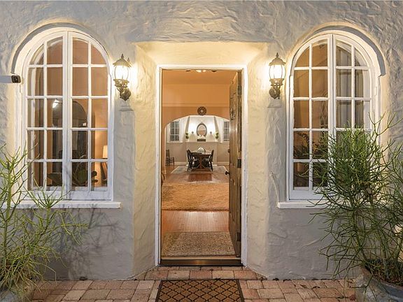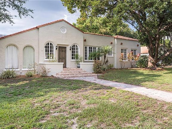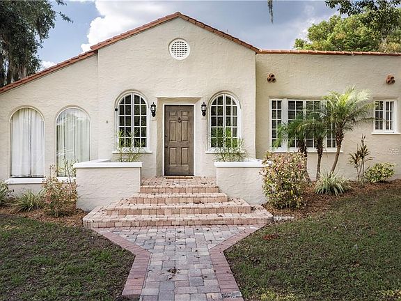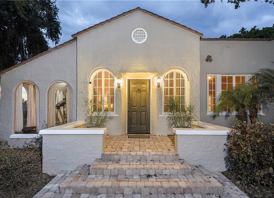 Beautifully updated three bedroom, two bathroom historical home for sale in Winter Haven. This home is located on a large corner lot with nearly half an acre. From the moment you walk through the front door you will be transported to a unique, charming, and cozy place. With vaulted ceilings, arched doorways, and beautiful arched windows, the entryway greets you with an open floor plan. The great room offers gorgeous hardwood flooring, wood burning fireplace, and a curved ceiling. The kitchen has been updated with stone counter tops, stainless steel appliances, and a brand new gas stove. The dining room has sconce lighting, large windows, and a lake view. Walk through the home to the large master bedroom that is light and bright, with a custom pallet wall and walk in closet. The master bathroom shower has recently been re-tiled. The guest bedrooms are equally spacious and inviting. This home has a detached two car garage with additional workspace. Relax outside and enjoy the sunset over the lake on one of the two screened in patios, perfect for entertaining or for enjoying a cool drink at the end of the day. This home has had many updates including new insulation blown in, a new gas stove last month and a new air conditioning unit in 2019. Come check it out today!