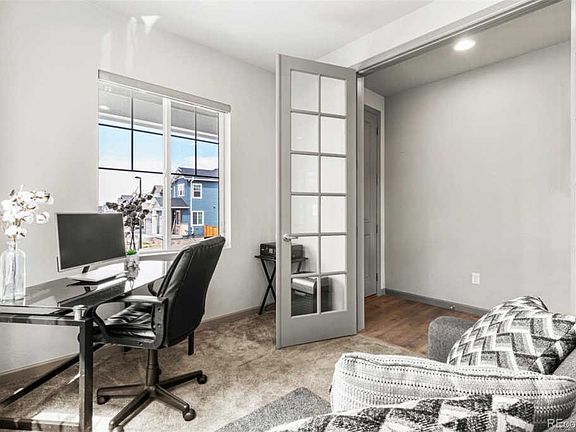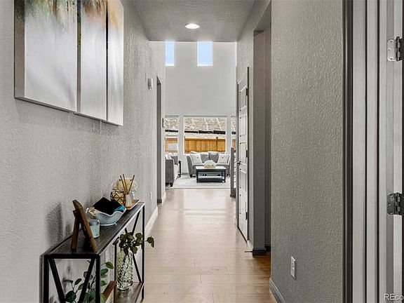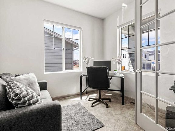 Welcome home to your GORGEOUS new home in Terrain! Walk in and fall in love with your open floor plan, vaulted ceilings, and ample windows throughout the home allowing natural light to stream in! Spacious living room is the perfect place to for watching football games, movie watch parties, and relaxing! Your gorgeous kitchen with high finishes features quartz countertops, gas range, higher end cabinetry, double ovens, island with pendant lights, and undermount sink. This space is sure to delight the chef in your home. Your dining room has plenty of space for large dinner parties or holiday get togethers and flows seamlessly onto your back patio to create an ideal space for indoor/outdoor entertaining. Your main floor office provides a private space for working from home. Upstairs, you'll find a spacious loft that is ideal for a movie theatre room, playroom, additional office space, or simply put up a wall and create an easy 4th bedroom! Secondary bedrooms provide ample storage space and views. Your master suite is a true oasis to relax in at the end of a long day! Master bathroom feels like a hotel spa! Located in the beautiful master planned community of Terrain with 2 pools, dog park, walking trails, and nestled just outside of downtown Castle Rock, this home is sure to delight! Please note, the backyard is TURF and low maintenance! Hard to see with the snow we got!