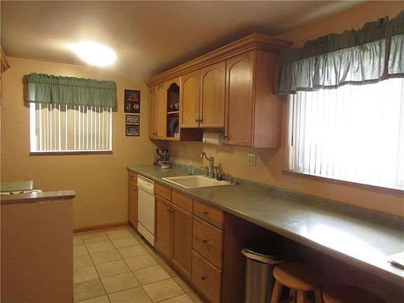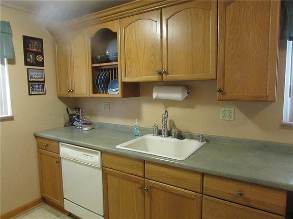 BRICK 3 BEDROOM HOME WITH 2 FULL BATHS, NEWER SPACIOUS KITCHEN WITH A LOT OF COUNTER TOP SPACE AND CABINETS, LIGHT OAK, WITH CERAMIC FLOOR, HARDWOOD FLOORS, LIVING ROOM AREA OFF KITCHEN, AND FINISHED BASEMENT, WITH BAR AREA, ROOF 10 YEARS OLD, 1 CAR GARAGE AROUND REAR OF HOME WITH A CARPORT AREA TOO, PARTIALLY WOODED REAR YARD