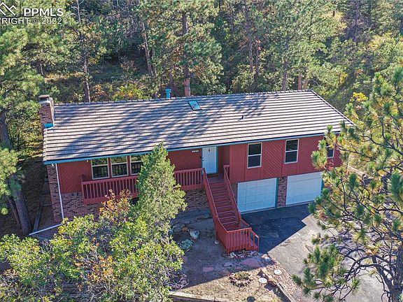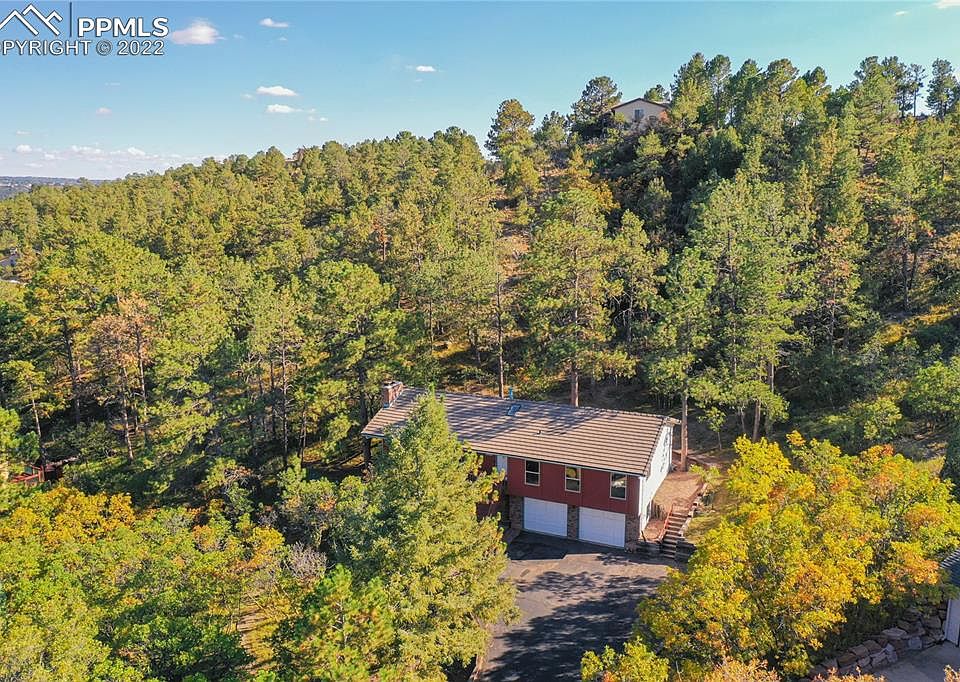 Live the Colorado Dream in this peaceful sanctuary nestled on a private .61-Acre wooded lot surrounded by towering pine trees + resident wildlife. Enjoy the sound of the wind traversing through the pines as you watch the sun set behind the mountainside on the covered front porch. Once inside you are welcomed home with a bright floorplan with an expansive great room that offers large living spaces, vaulted ceilings and a wood-burning fireplace. The kitchen is equipped with an abundance of white cabinets with pullouts + ample prep space, tile flooring + quality appliances. The dining room & kitchen walkout seamlessly connect the indoors to the expansive outdoor living space for effortless entertaining. Enjoy a peaceful slumber in one of the four bedrooms w/plush carpet including the owner's suite highlighting a private ensuite w/granite countertop + walk-in shower w/updated tile surround. The updated main level bathroom offers granite countertops, an illuminated vanity mirror + jetted tub/shower combo for ultimate relaxation. Adding to the list of incredible features is the garden-level basement which offers a family room w/pre-plumbing for a wet bar, a 2nd wood-burning fireplace, a 3/4 bath + bedroom. Outside, true Colorado living awaits with breathtaking views of the wooded natural landscaping + visiting residential wildlife, along with an expansive wood deck where you can enjoy the tranquil sounds of nature. The outdoor enthusiast will enjoy the nearby trail systems, nature preserves + natural habitats while still offering easy access to a plethora of shopping, dining + entertainment experiences. Coupled with award-winning district 20 schools and easy access to I-25 makes this the ideal place to call home!