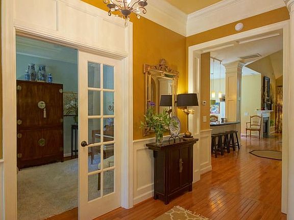 This home is situated on a private lot backing up to a wooded area. When you walk in the front door you are greeted by a warm foyer flanked by a formal den on the left and formal dining on your right. Just past the foyer to the left is an upgraded kitchen featuring ceramic tile, granite, and stainless appliances. The eat-in kitchen opens up into a 2 story family room. The 1st master is downstairs and features a large master bath with separate tub and shower and walk-in closet. The laundry and half-bath are to the left of the foyer. Just off of the breakfast nook is a large screened in porch that overlooks the wooded lot. Once upstairs you are greeted with a large loft, big enough for an office space and seating area. The hallway overlooks the 2 story family room. There are 2 bedrooms, both with walk-in closets and a full bath in the hall. The 2nd master suite is upstairs. This room has 1 walk-in closet and 1 cedar closet as well has a full bath. At the end of the brick inlayed driveway is a 2 car detached garage with a newly renovated FROG. This room features a full bath, closet and full kitchen with new carpet, new paint and new appliances. This home is a must see. – Buyer pays a one time neighborhood enhancement fee of .5% x sales price to Daniel Island Community Fund at closing.