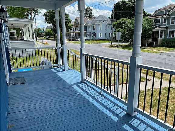 Located just two blocks from Thompson Park (Zoo, Golf course, Tennis courts, Play park, Picnic areas, Walking trails) and only a fifteen minute commute to Fort Drum. From the Open front porch, enter the foyer which opens into the large living room with a gas fireplace. The formal dining room is off the kitchen at the back of the house making entertaining a breeze. Solid surface counter tops with breakfast bar, eating area and loads of cabinetry complete a great functional kitchen. A little student desk area is located between the kitchen and the dining room. Great spot for getting homework completed. A large screened in porch is off the back deck gains another couple hundred more square footage. Master Suite includes a huge walk-in closet and Jacuzzi soaking tub. 2 more bedrooms and another full bath complete floor 2. 3rd floor is a huge bedroom and/or Living area. Three Full Baths, Basement and Attic storage, fenced in yard, gas fireplace and so much more. Move right in and make this house your home. Call for your personal showing today.