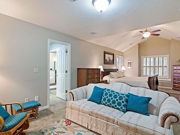 Spacious vaulted 864 sq ft master bedroom suite including walk in closets, jetted garden tub & glass shower. Granite counters, upgraded woodwork, hardwood, upgrade carpet. stainless appliances included. Lots of cupboards and counters. Music or formal dining room. 2 gas fireplaces, Trex deck, patio and private front porch. High efficient furnace is wired for emergency generator on a wall panel in garage. Oversized garage and shelving, private, wooded backyard.