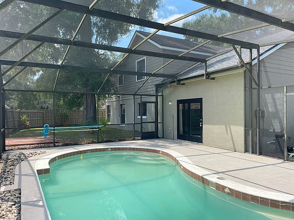 Great 3 bedroom, 2.5 bath 1 1/2 story home, with enclosed screened pool and 2 car attached garge in a great community. This home has it all! The Living/Dining room has a valuted ceiling, hardwood floors downstairs and carpet upstairs, fenced in bank yard, washer, dryer, stove refrigator and dishwasher. It even has a view of the lake from the Dinning room. Call for a showing anytime. $50 per person application fee. Short term rental 7 to 12 months only, as home is to be sold in 2026.