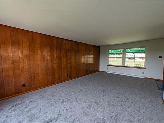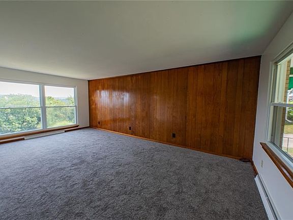 Welcome home! This adorable brick ranch home is move in ready! Pull onto your newly poured cement driveway that leads to a large 2 car garage! The spacious living room has large windows allowing for tons of natural light and stunning views out the back. All new flooring throughout the home and freshly painted makes this cozy and inviting. The basement is finished complete with walk out access, laundry room with half bath and wood burning fireplace. Pack your bags and get ready, this gem will not last long!