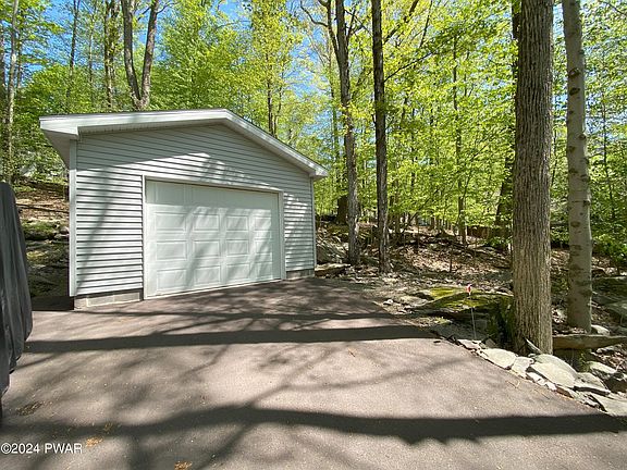 Privacy with a double lot near the end of cul-de-sac and like-new construction! The original owners have been using this beautiful, custom home as a part time retreat until they retired, with ''no pets'' ''no smoking'' and ''no other family members'' which explains the pristine condition and quality finishes. The 3 seasons room with 9 windows showcases a 180-degree view of nature.Some of the special features include gas range cooking, a living room with vaulted ceiling and propane fireplace with automatic thermostat, split unit system air conditioning, a full, heated, walkout basement, new detached garage, and loft area that can be used as office space or extra sleeping area. The interior doors are solid oak with easy-to-use lever doorknobs.As part of the WLE community, you have privileges to access 2 private lakes, beaches, 2 outdoor pools, an indoor pool & gym, lodges & game room as well as access to the private community marina on the big lake, Lake Wallenpaupack! Sewer, water, and trash are part of the low community dues.