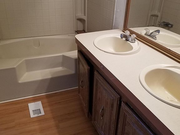3 Bedroom, 2 Bath mobile home with 1064 sf. Hardwood Laminate floors throughout, Central heat and a/c. Good condition and a great deal at only $45,900.