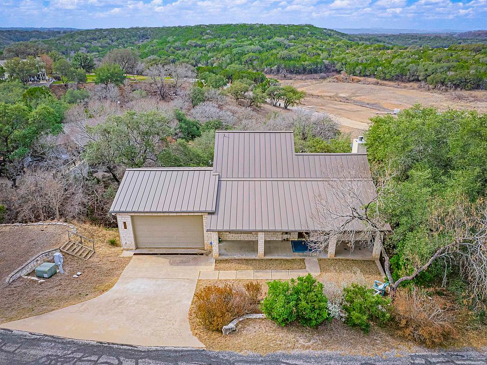Welcome to Windermere Oaks, a stunning home located in the gated community of Spicewood, Texas. This contemporary four-bedroom, three-bathroom house features two living areas and a dining room as well as an eat-in kitchen with plenty of extra storage. The property comes with a two-car garage that has work benches and shelves for your convenience. The parking area next to the garage can accommodate extra cars or trailers. Additionally, this home is equipped with a metal roof and leaf guard gutters along with a rainwater collection system capable of holding up to 3600 gallons! From this well appointed home you can soak in the views of Lake Travis and enjoy all the beauty that the Texas Hill Country has to offer from one of its three decks. There are 27 live oaks on 1.11 acres providing ample outdoor space for entertaining guests around your stone fire pit patio! The gated community offers many amenities including 3 pools, an airport, tennis courts, cluster mailboxes, marina access and pavilion use so you never have to leave your neighborhood for recreation or relaxation activities!