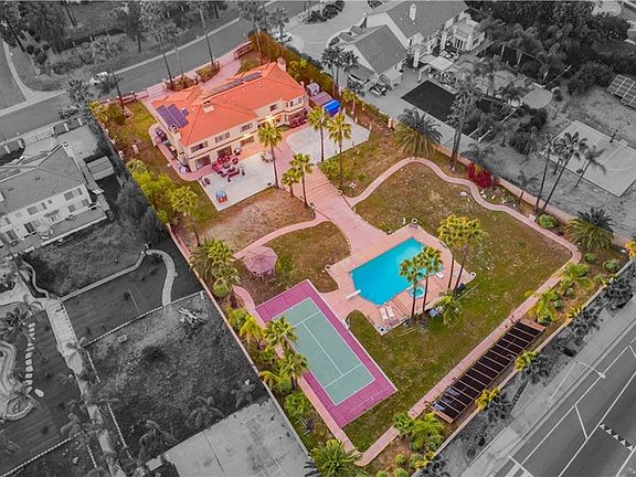 Amazing Custom Estate in the Highly Desired Canyon Crest Area! Great curb appeal & gated front yard. As you enter the doors of this magnificent 5,800+ sqft home. Enjoy the dramatic staircase, luxury & quality every which way you turn. Beautiful flooring, spacious living room, elegant formal dining room & gourmet kitchen open to family room which offers expansive views of the impressive grounds. LUXURIOUS MASTER SUITE w/sizeable walk-in closet. Fireplaces are found in living & family rooms & master bedroom. In addition to the master, two other bedrooms have their own private bath. Many upstairs bedrooms have commanding yard views and the convenience of an upstairs laundry room. This home offers an extraordinary setting for entertaining and evening strolls, with its colored concrete stairs leading to the solar heated pool, spa & adjacent sport court, hardscape & concrete paths. The home is also equipped with solar panels to provide clean & cost-efficient energy.
