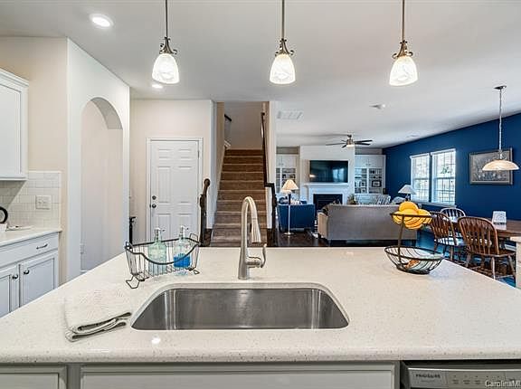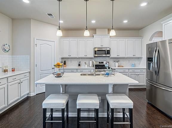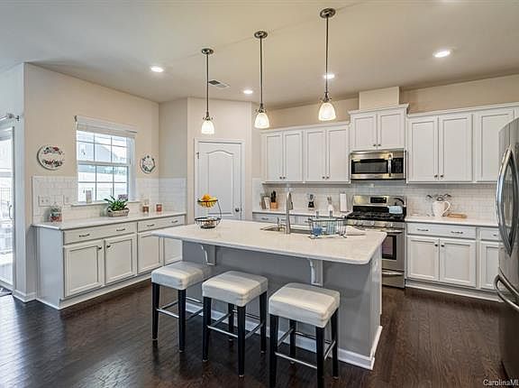 Only 3 years old, barely lived in located in Kensington/Cuthbertson school district. This gorgeous home sits on a great spot in the community with wider roads, large flat driveway, and fenced flat yard. Gorgeous dark blue/grey exterior, upgraded front door with glass inserts, leads to a wonderful modern open floor concept with upgraded gourmet kitchen. Refrigerator included in the purchase. The homes dark hardwood flooring makes the white Quartz countertops, backsplash, and cabinets pop with luxury. Huge island with restaurant style sink offers a great entertainment and eating space. Butlers pantry connects to formal dining room off the front of the home. Large great room with built in shelving has wall of windows to add light to your mornings. Access the screened porch and rear patio quickly from the kitchen. Upstairs offers huge oversized master suite, w/tub, dual sinks, walk in glass shower, 2 huge closets & 3 other large bedrooms with walk in closets & a cute loft for relaxing.