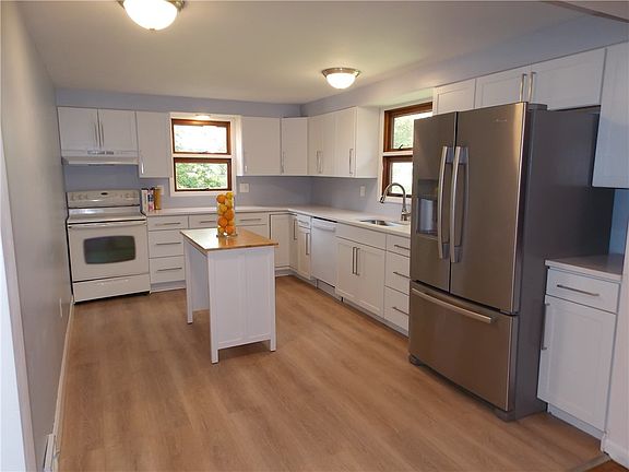 Well Maintained Raised Ranch has 4 bedroom and 2.1 bath sits on a low traffic, dead-end street, featuring hardwood flooring and many updates. Kitchen includes updated cabinets w/hardware, quartz counter with deep inset sink, island, recess lighting, new stainless steel refrigerator and more. Adjoining dining area leads out to the huge enclosed rear porch with a new ceiling fan. Rear Porch is surrounded w/window(includes screens) which looks out into the private rear yard. Master includes half bath. Extra room in basement w/new glass block, vented windows which can be used for quests, gaming room or simply extra storage Wood siding recently refinished and home freshly painted, as well as bathroom updates. Deep garage with auto garage door opener, sink and new garage door, with separate adjacent storage room for mower, etc. Conveniently located near Rt. 65 shopping, restaurants, approx. 20 min from Cranberry Twp.