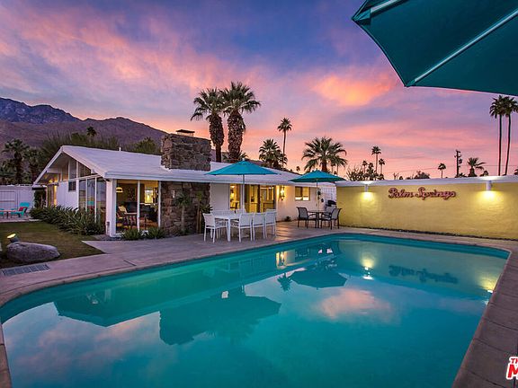 Published in the NY Times, LA Times & featured in curbed.com, turn-key furnished Mid Century Modern on fee simple land designed by Palmer & Krisel & built by the Alexander Company on the original model row. Freshly renovated featuring brand new 36"x36" porcelain tile throughout, new driveway, new garage roof, freshly recoated house roof, all termite work completed & property is sold completely furnished to include a vintage 1961 Shasta Trailer reproduction, circa 2015. Mountain views, large pool, gazebo, spa, firepit & the Shasta Trailer. Twin Palms currently has NO RENTAL CAP - this property has a very successful VRBO history with a built-in client base.