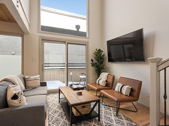 Available 2/21 - One month minimum, PRICING CHANGES BASED ON LONG TERM. Our amazing Modern Aspen Core 3 Bedroom, 2 Bathroom Loft is newly furnished, bright & sunny in the HEART of the Aspen Core. No neighbors above or below you, keypad for self check in and set back off of the road, so it's very quiet yet walk to anywhere in town and many trail heads. Each master bedroom has a queen size bed and the third bedroom has two queen sized beds. 1 Reserved Parking upon request ($150 pet fee per pet, please confirm pets before booking). The space Featuring three master bedrooms upstairs, each with a queen sized bed and the third master has two queen beds. Both master bedrooms have views of AJAX (Aspen Mountain), closets, and TV's in each room. The downstairs has an open floor plan, a 65 inch HD Smart TV, a stove, quartz countertops, stainless appliances, full kitchen, a huge sky light! The private balcony is quiet and gets sun throughout the day...in the summer evenings its great spot to grill on the Webber Gas Grill and enjoy the views. There is a built in desk if you need to do any office work on your vacation as well as super strong WiFi Both bathrooms are located upstairs with ample storage throughout the unit. There is (1) assigned parking spaces for this unit upon request. This Aspen townhouse sleeps up to eight people but please NOTE: QUIET HOURS ARE FROM 10P-7A AND WE DO NOT ALLOW GROUP GATHERINGS OR PARTIES. The total total square footage of the townhouse is 1,000sf. All bills paid, 1 month minimum, open to longer rental term.