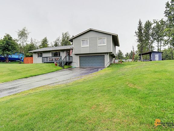 Great tri-level home, very well kept and in great neighborhood. Light and bright with custom paint through out the home, large living room, nice dining room with fireplace. Large tiled breezeway attaches home to detached 2 car shop. Nice large yard in front and back, paved driveway, tons of room for all your Alaskan toys!