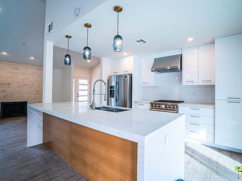 No detail was missed in this beautifully remodeled 3 bedroom, 2 bath home. Nothing was left untouched. Entertainers Delight with Open Living Space, Backyard with Pool/Spa, BBQ, Fire pit and amazing Mountain Views. As you enter the home the large cathedral ceilings provide fantastic space and light that works with the beautiful wood finish ceramic tile and 5 inch baseboard throughout the home.The kitchen features marble counter tops, a waterfall island, stainless steel appliances and a brand new wine fridge. Every single window and door was replaced. The large corner lot features new landscaping and a rebuilt fence. The pool has been completely refinished with new tile and pool equipment. The backyard features a new custom bbq island, fire pit and outdoor shower. The master bath features a beautiful double vanity, shower with bench and a slider to the backyard. Come see this house before it's gone!