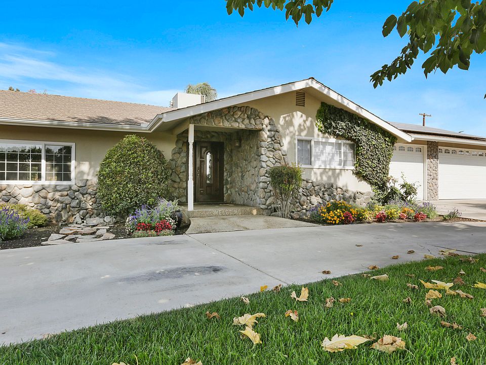 1025 E Palm Dr is a stunning oasis situated on 1/2 an acre close to town. Drive in through the circular driveway and see the beautifully landscaped yard. The bright and airy home features 3 bedrooms and 3 baths with one of the most unique and stunning master suites you will ever see featuring a full size river rock fireplace and large closet with professional organizers. The bathroom boasts a wall of windows and a walk in shower with 4 heads. There is a bonus room off of the master that could serve as an office or an additional bedroom. Attached to this home is the most beautifully finished 4 car oversized, completely finished garage. The back yard features a huge pool, a lovely gazebo and lots of covered deck space to fulfill all of your entertaining dreams. There is a bonus storage container located in the back of the property and lots of additional parking. This amazing home has had a recent facelift with new paint and flooring throughout. **As a bonus, there is OWNED SOLAR**