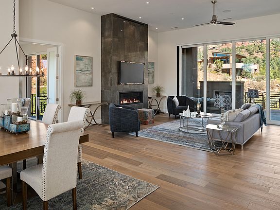 Fabulous new home just completed with fantastic red rock views!!! Located in prestigious Jordan park . Walking distance to restaurants . Very private and quiet location bordering 20 acre open space which adjoins national forest. Separate entrance for casita/studio adjoining rec/media room which create two separate living areas. Indoor outdoor entertaining at its best with huge great room sliding doors opening to outdoor patio area with romantic fireplace and bar-bq area. Upscale thru out. wired for security and cameras with speaker system. Three car garage . Lower level has room for an additional bedroom , room for pool table or media room. Driveway is long ,private, and impressive with custom night lighting . Tile roof. Seller president licensed Az.realestate salesman.