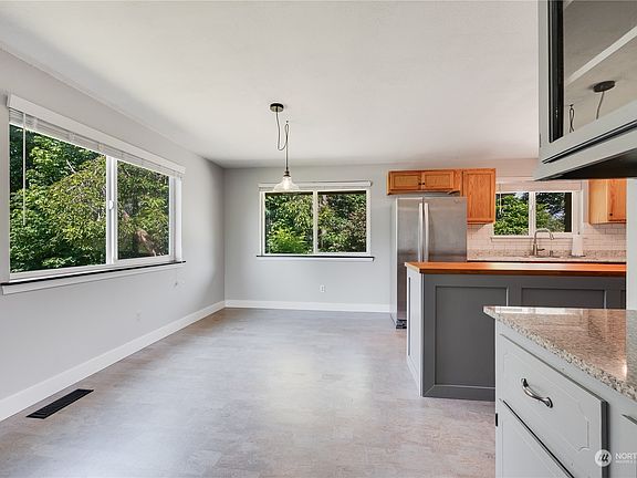 Welcome to this lovely 4 bedroom rambler with tasteful renovations, making it a must-see property. This home stands up on Arlington's highest hill, offering close access to downtown Arlington. The open floor plan allows an easy flow between the living spaces, perfect for both daily living and entertaining. Its prime location on a low traffic dead-end street, provides rural quiet in a neighborhood setting. You're in close proximity of schools, restaurants and parks that make this property a unique find.The outdoor space of this home is expansive, with a large patio that offers room to BBQ or simply relax. Don't miss this opportunity for this rare home with so much to offer.