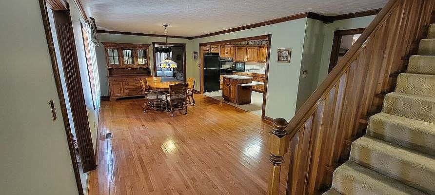 The total square footage of this home is 5057 sq. ft. 4,096 sq. ft. is finished. There is a huge storage area upstairs that is not counted in the finished sq. ft. for the home. It has a 3 car garage. The property is 7/10 of an acre. It is a corner lot so there are no neighbors to the south and the grade school property is adjacent to the east end of the property. So, there are no neighbors east. The backyard view is great because watching the children playing in the fields during the school year is entertaining. The home had a new roof added approximately 15 years ago.