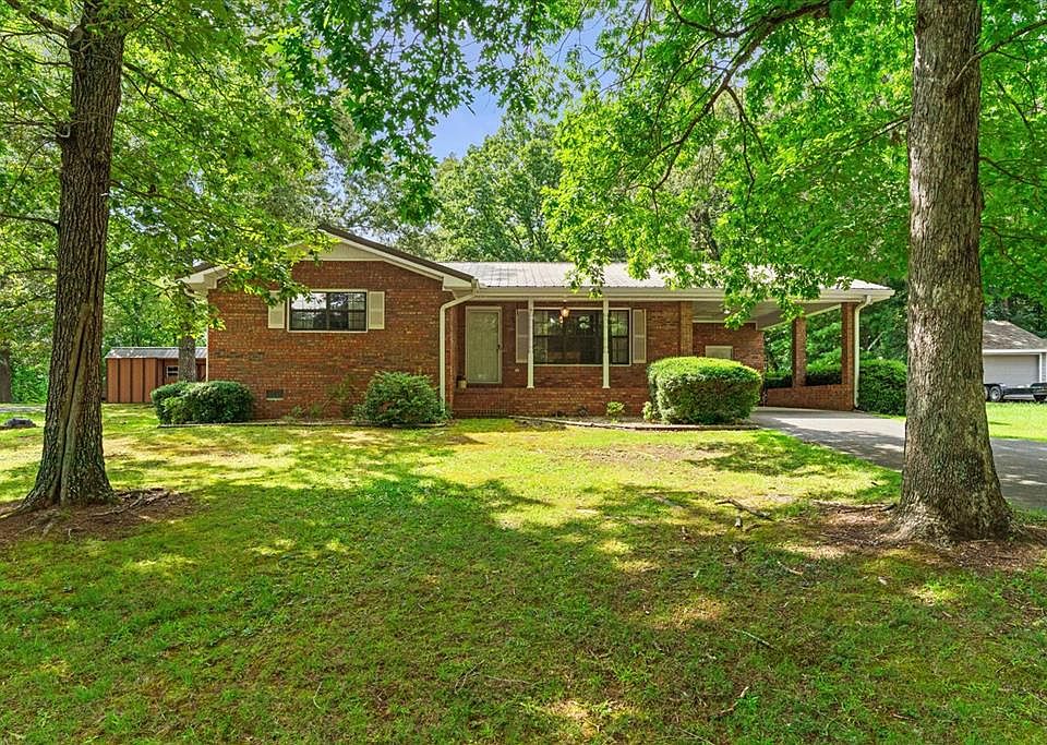 Located just minutes from downtown but tucked into the quiet charm of Chatsworth, this all-brick 2-bedroom, 2-bathroom home offers comfort, function, and a peaceful setting near the beauty of Fort Mountain. Enjoy the welcoming front porch, level yard with mature trees, and concrete driveway leading to a 1-car attached carport with a separate storage room. Inside, the layout includes a spacious living room, a dining area just off the kitchen, and a kitchen with generous cabinet and counter space. The laundry room features built-in cabinetry and an exterior door for added convenience. The primary bedroom suite offers two walk-in closets and a private full bath. The second bedroom includes a double-door closet and is near the hall bath with extended vanity. Situated in a small mountain town setting, this property combines low-maintenance living with access to local parks, schools, and outdoor recreation.